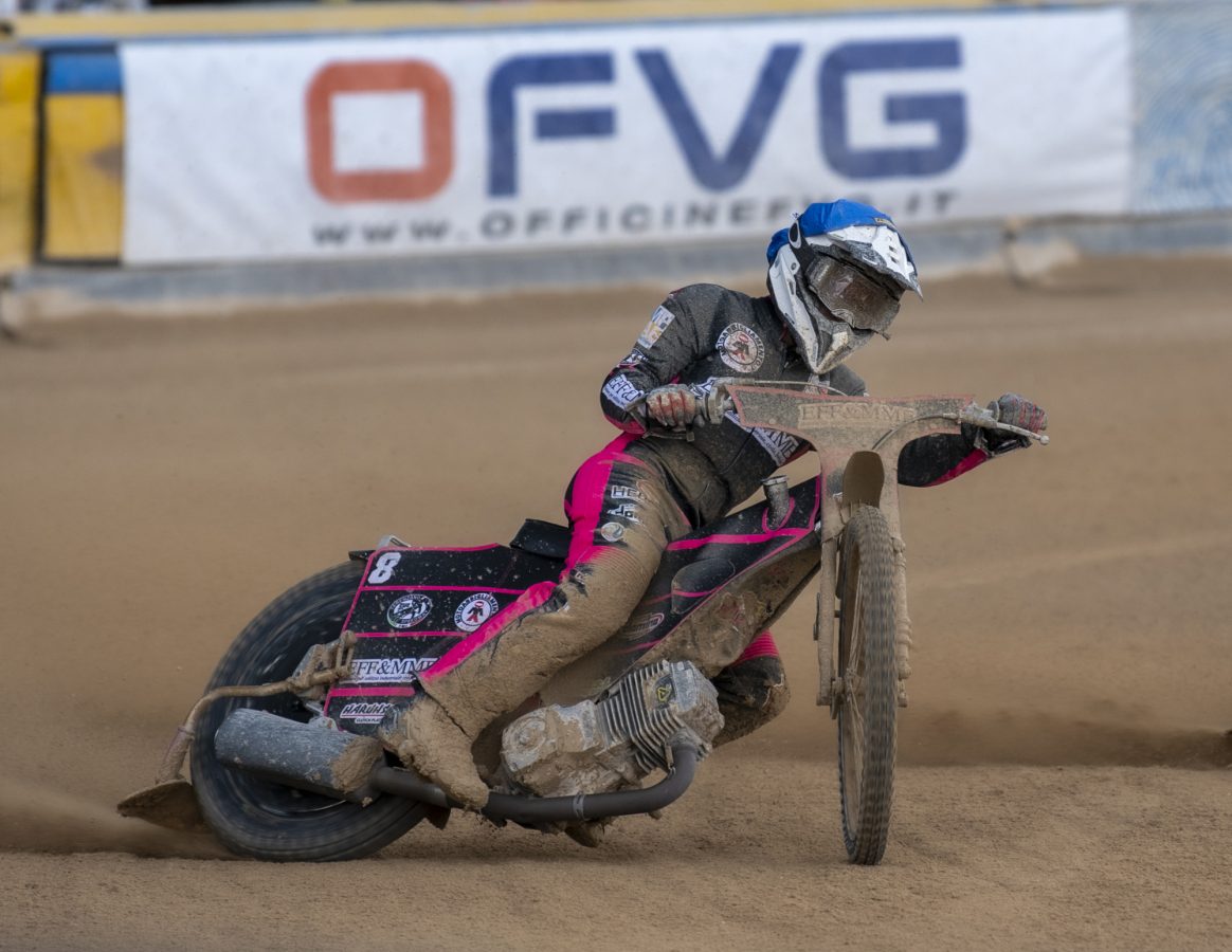 Dopo quattro delle otto sfide in programma, la società di Terenzano comanda grazie ai propri piloti sia la classifica assoluta, sia quella riservata ai rider della categoria under 21. Merito rispettivamente di Michele “Paco” Castagna e Matteo Boncinelli, capaci di vincere sulla pista Santa Marina di Lonigo anche l’ultimo round della serie nazionale prima della pausa estiva. Il primo si è imposto tra i big precedendo il portacolori del Moto Club Lonigo Nicolas Vicentin. Per il portacolori del sodalizio friulano si è trattato del quarto successo assoluto in altrettante gare, ruolino di marcia che ne fa il leader della graduatoria generale a punteggio pieno (100 punti) davanti a Vicentin (88) e Boncinelli (72). Stesso discorso per “Bonci” tra i giovani: sull’anello veneto il pilota ha staccato Kevin Melato e ha calato il poker di affermazioni nel corso della serie nazionale. Cento i punti per lui: seguono Mattia Santinelli a quota 64 e Omar Vezzaro (62), altro giovane del Moto Club Olimpia, che tenterà di lottare per la seconda posizione non appena potrà rientrare in pista dopo l’infortunio subìto lo scorso aprile a Terenzano.